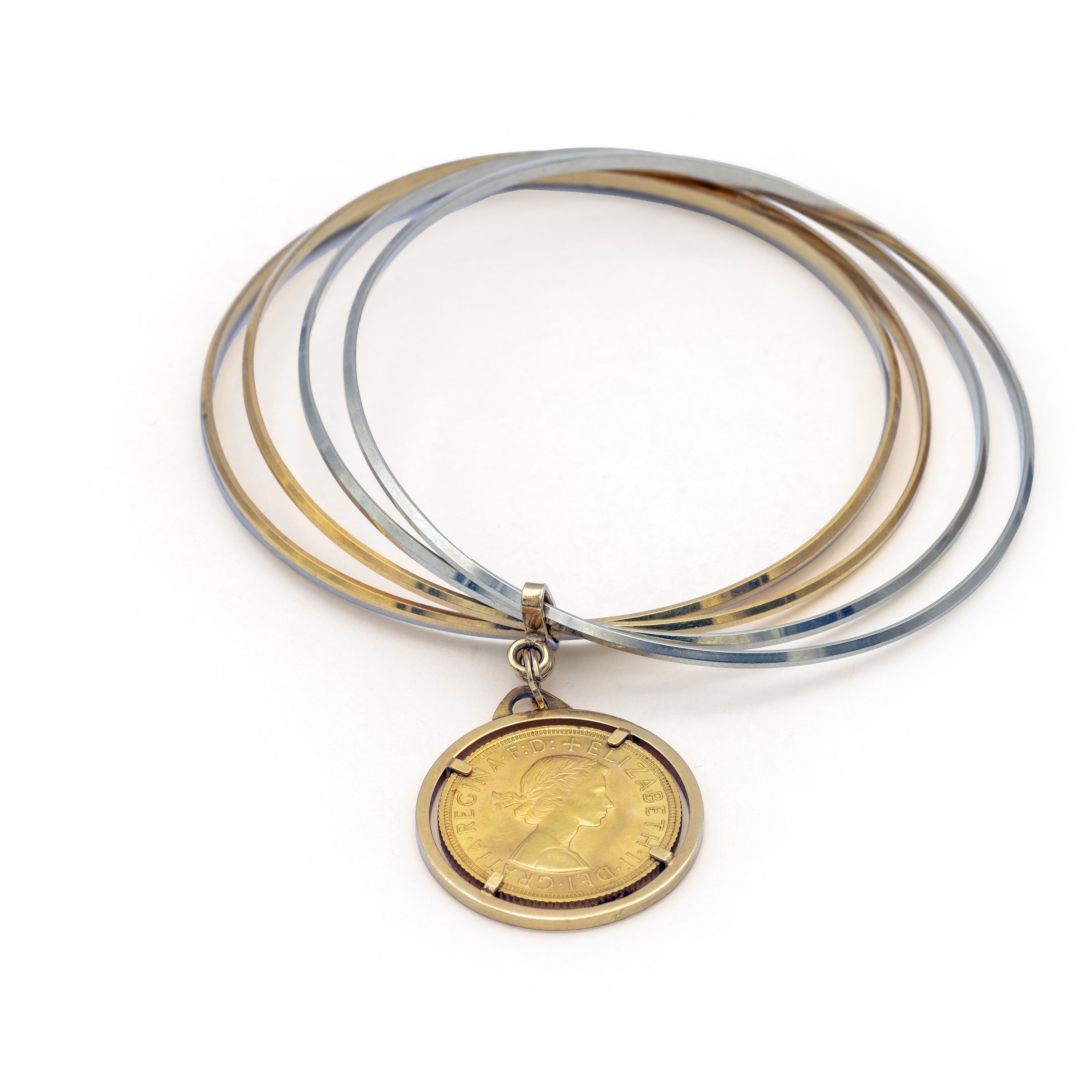 Bracciale manetta a cinque cerchi in oro giallo e bianco 18kt