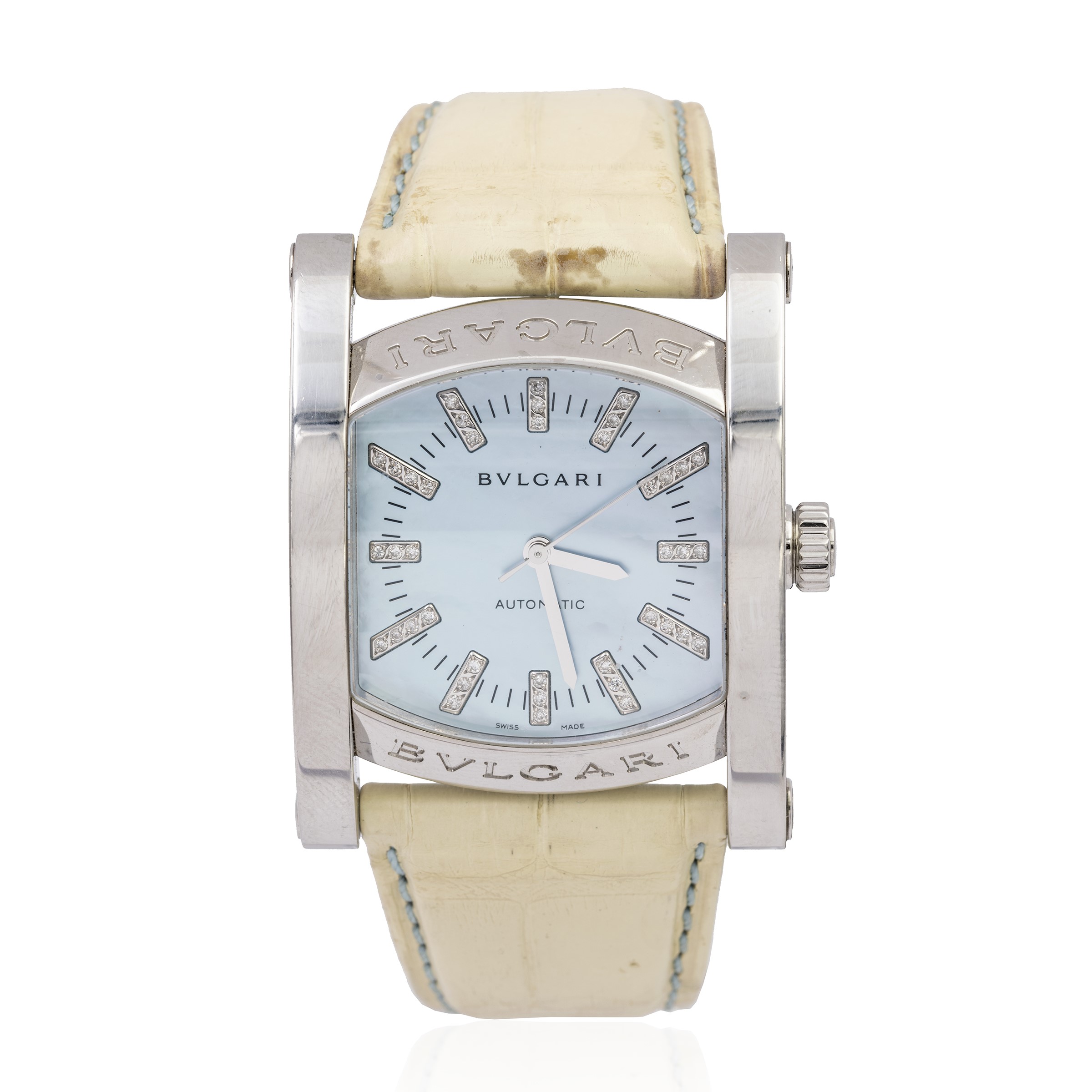 edizione limitata, anni 2000 in acciaio, ref. AA44S - D9592 cassa curva 44x34 mm. quadrante in madreperla, indici con diamanti taglio brillante, vetro zaffiro lievi difetti, movimento meccanico a carica automatica, cinturino originale in pelle con chiusura deployante in acciaio, cassa, quadrante e movimento firmati