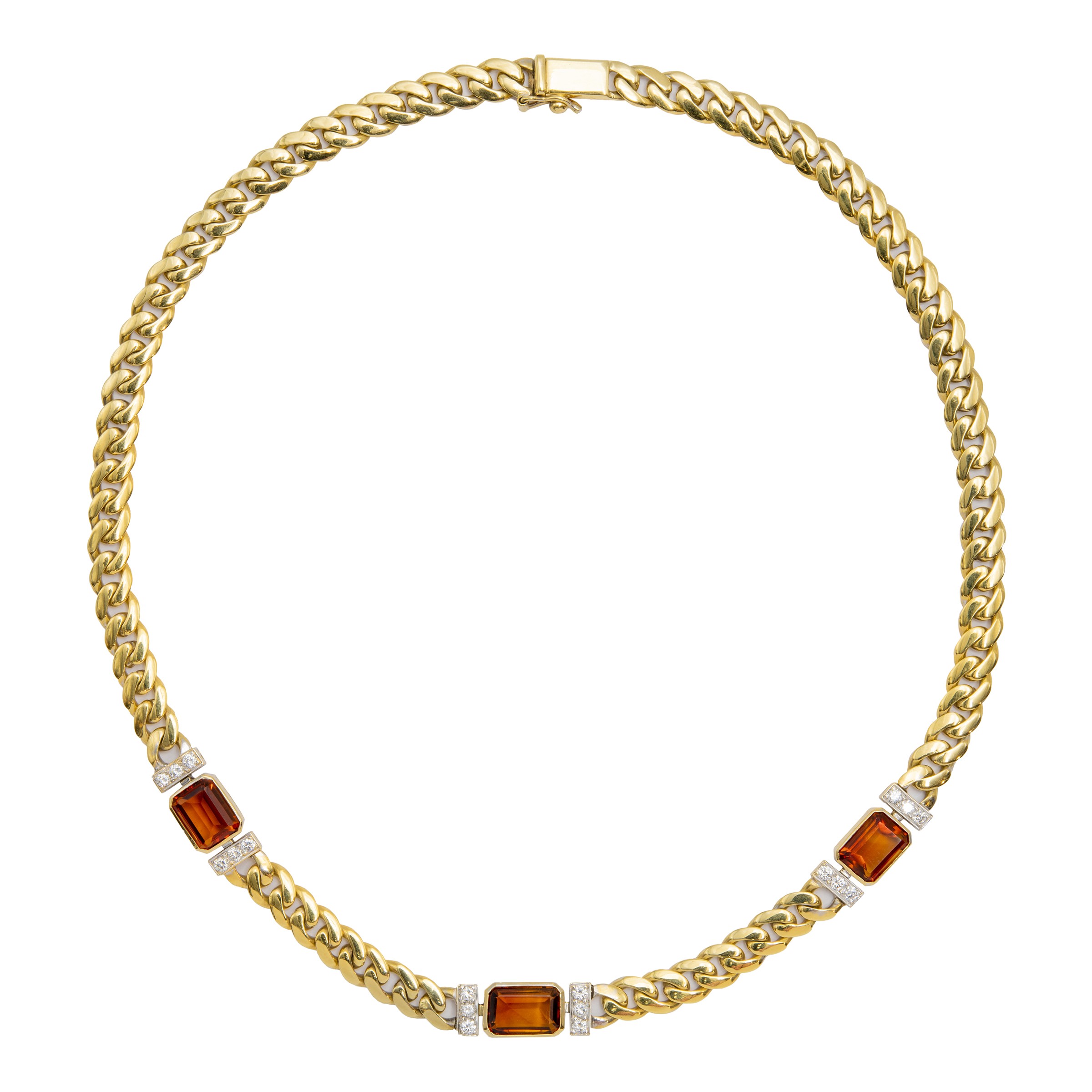 impreziosita da tre topazi gialli e diamanti taglio brillante ct 0,40 circa, lunghezza 40 cm.