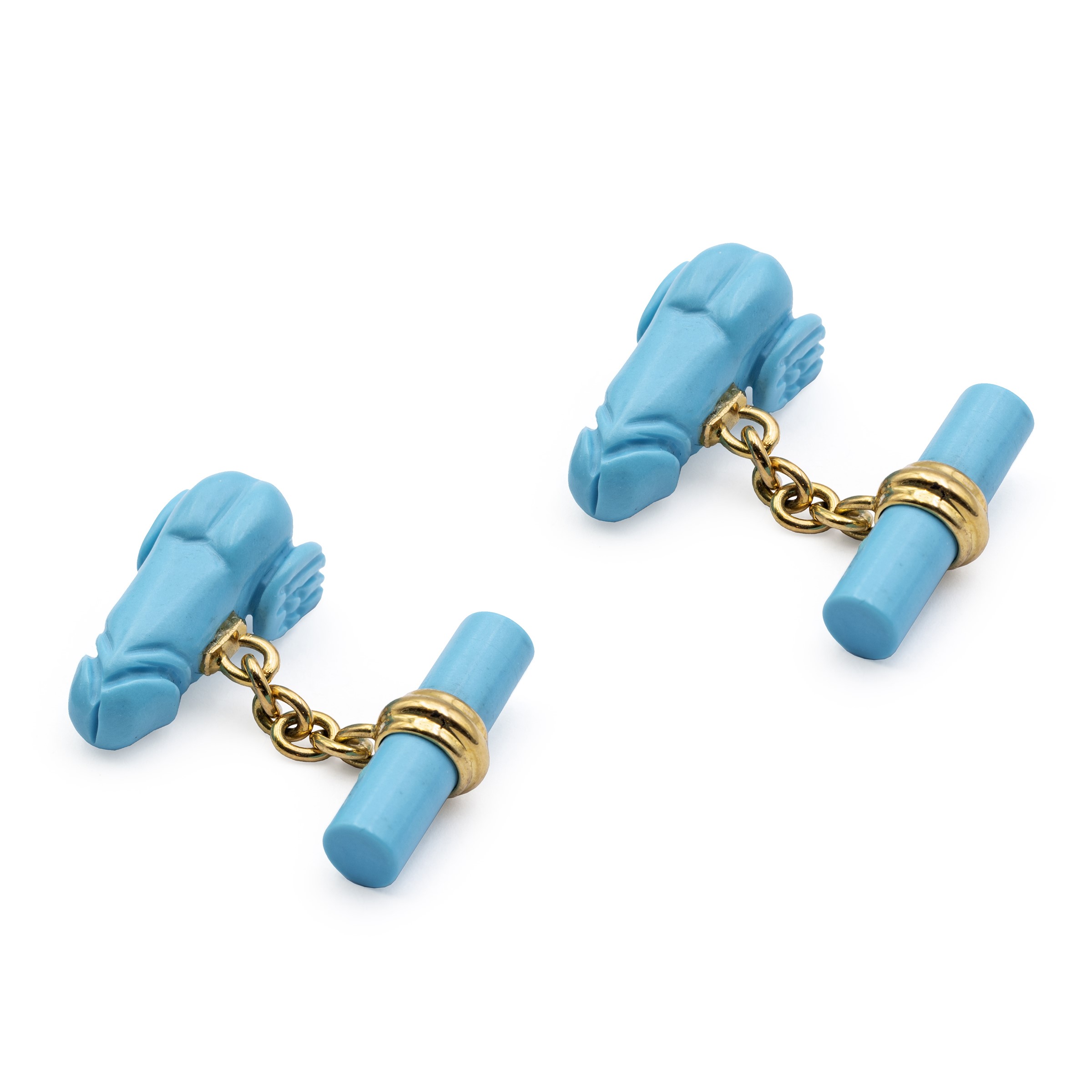 Gemelli simbolo fallico in oro giallo 18kt e turchese