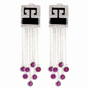 Orecchini a lobo in oro bianco 18kt rubini e diamanti