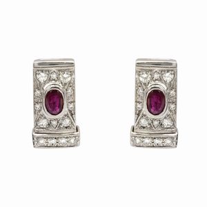 peso 11 gr. rubini taglio tondo e ovale ct 3 circa e diamanti pendenti taglio a goccia ct 0,40 circa, lunghezza [..]