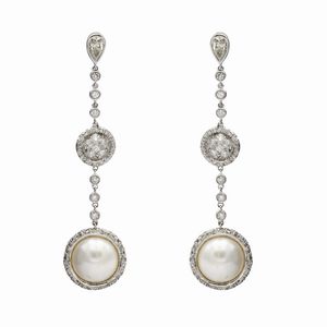 Orecchini pendenti in oro bianco 18kt diamanti e perle mabé