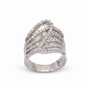 Anello fascia groumette in oro bianco 18kt e diamanti