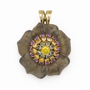 Pendente fiore in oro giallo 18kt quarzo fumé