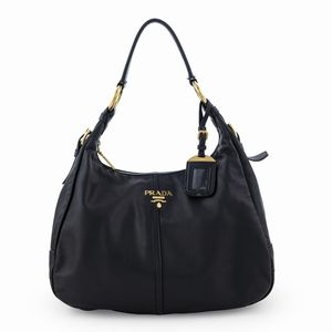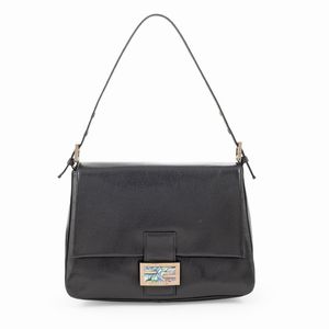 misure 33x24x12 cm. in pelle nera con finiture dorate, tracolla ad un manico, interno ad uno scomparto in pelle [..]