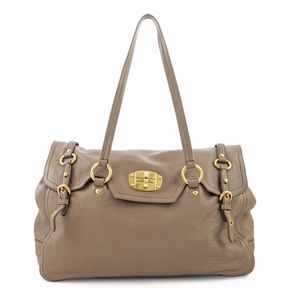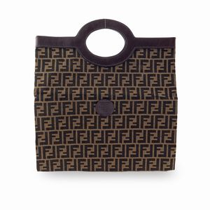 misure 40x40 cm. in tela marrone a due manici, finiture in pelle, interno ad uno scomparto, completa di custodia [..]