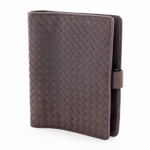 misura 23x19 cm. in pelle marrone intrecciata, all'interno cinque tasche e porta carte credito, condizioni buo [..]