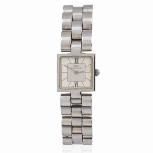 in acciaio ref. 603.301S - 0.024 cassa carré 18x18 mm. quadrante duodial lievi difetti, movimento al quarzo, vetro [..]