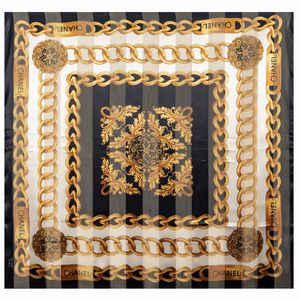 misure 100x100 cm. in seta nei toni del nero, bianco e giallo oro, condizioni buone