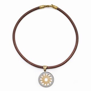 peso 12 gr. firmato in oro giallo 18kt e acciaio, completo di laccio originale in cuoio con chiusura in oro giallo [..]