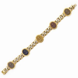 peso 45 gr. firmato in oro giallo 18kt con 5 cammei in pietre dure scolpiti a raffigurare profili maschili, lunghezza [..]