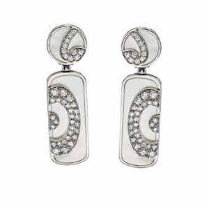peso 22 gr. firmati madreperla e diamanti taglio brillante ct 2 circa, lunghezza 4,5 cm. completi di scatola