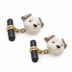 peso 12 gr. firmati in oro giallo 18kt e Jet nero sfaccettato, misure 3x3 cm.