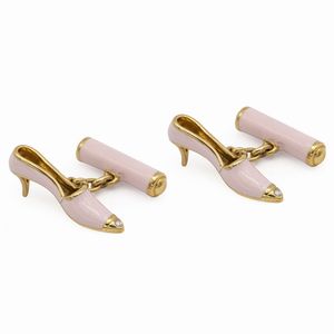 peso 14 gr. firmati in oro rosa 18kt, segni di usura, lunghezza 6 cm.