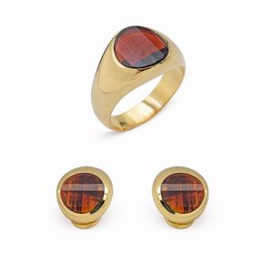 peso 27 gr. firmati in oro giallo 18kt e granati sfaccetati, composto da un anello e orecchini a lobo, anello [..]