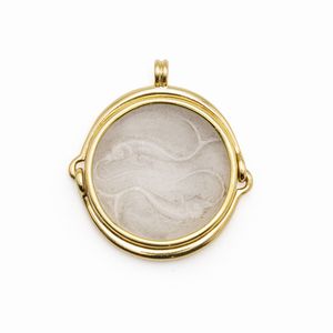 peso 17 gr. firmato in oro giallo 18kt e cristallo di rocca scolpito