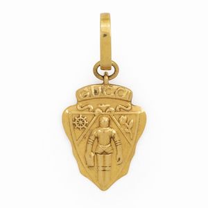 peso 4 gr. firmato in oro giallo 18kt con moschettone, misure 3x1,8 cm.