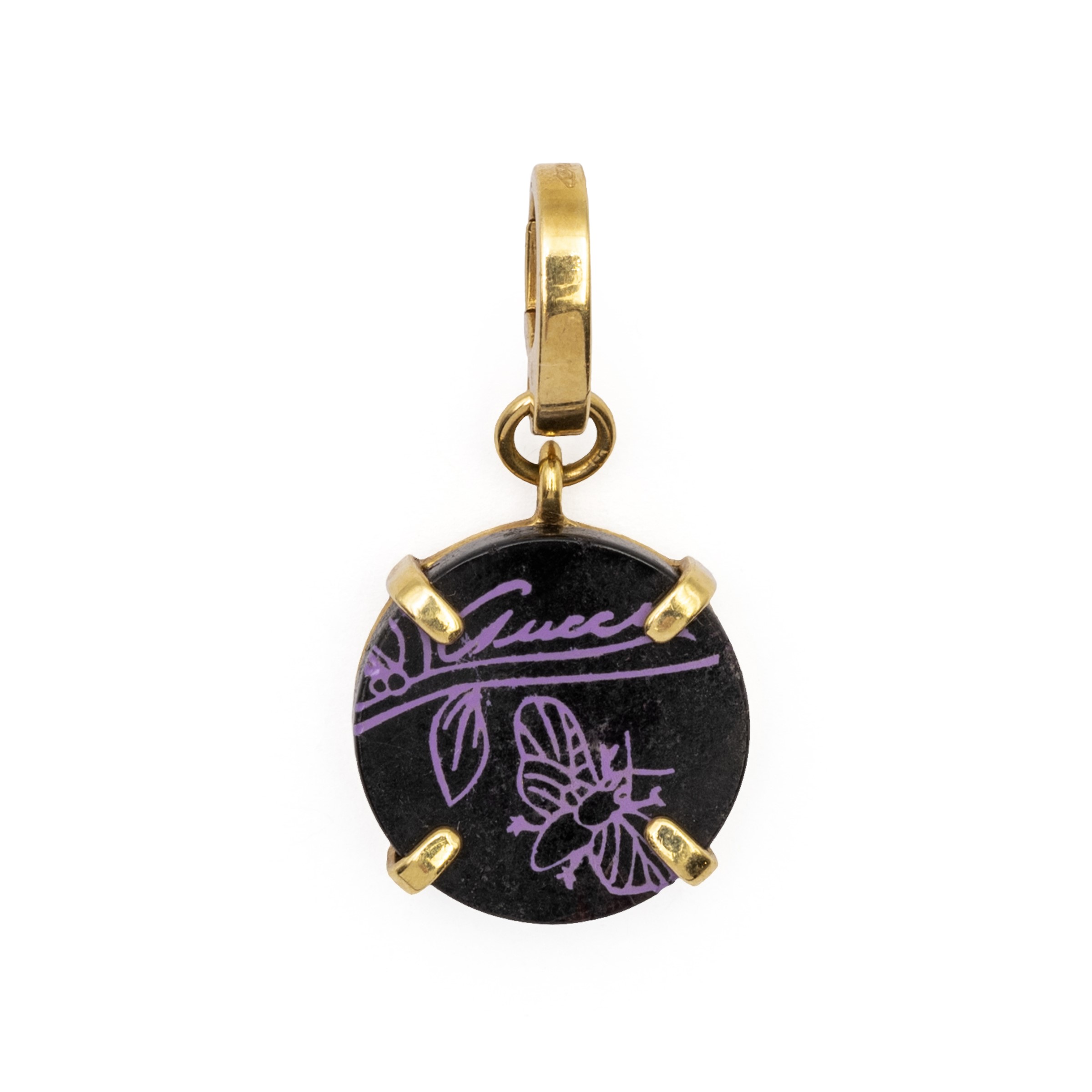 firmato in oro giallo 18kt con moschettone, misura diametro 1 cm.