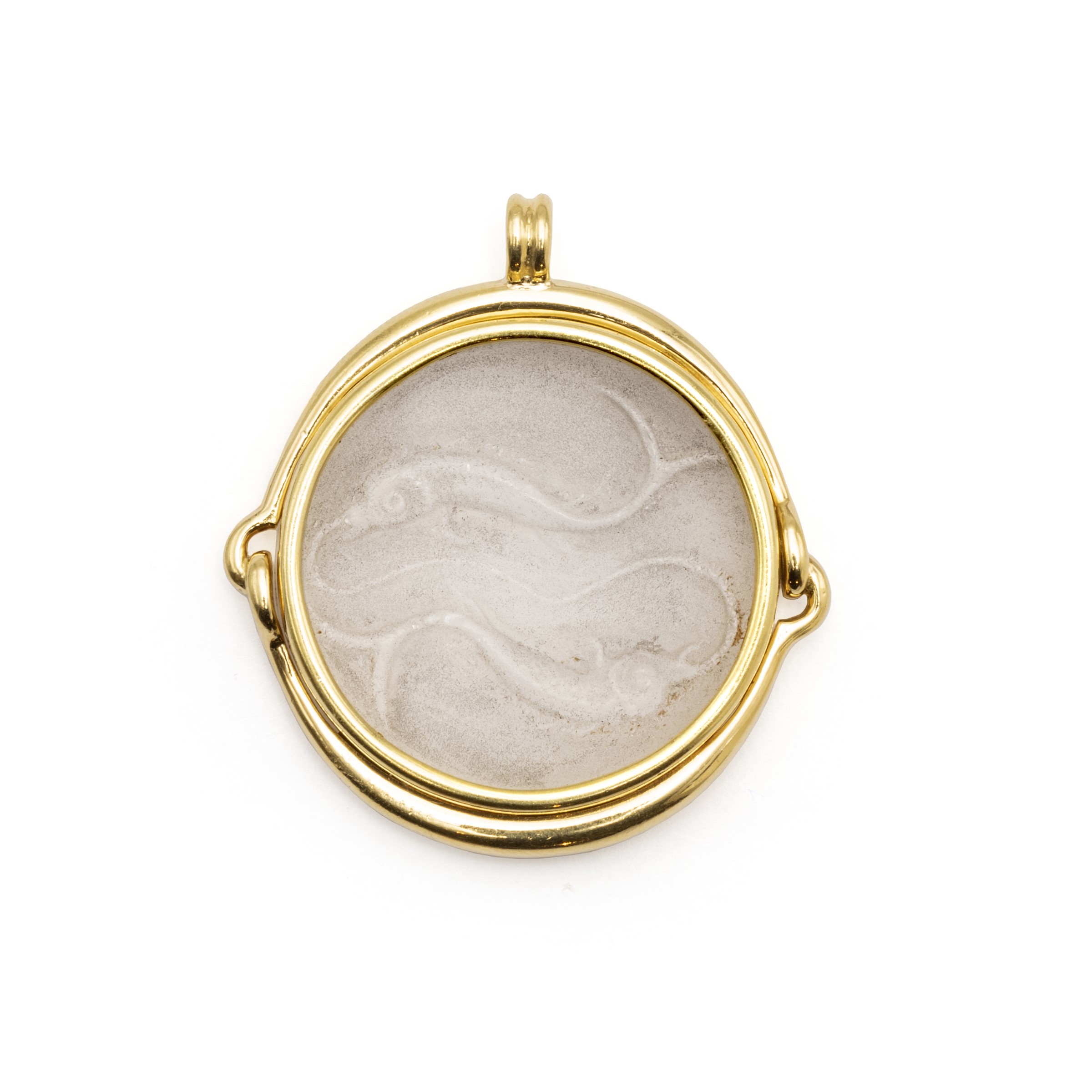 firmato in oro giallo 18kt e cristallo di rocca scolpito