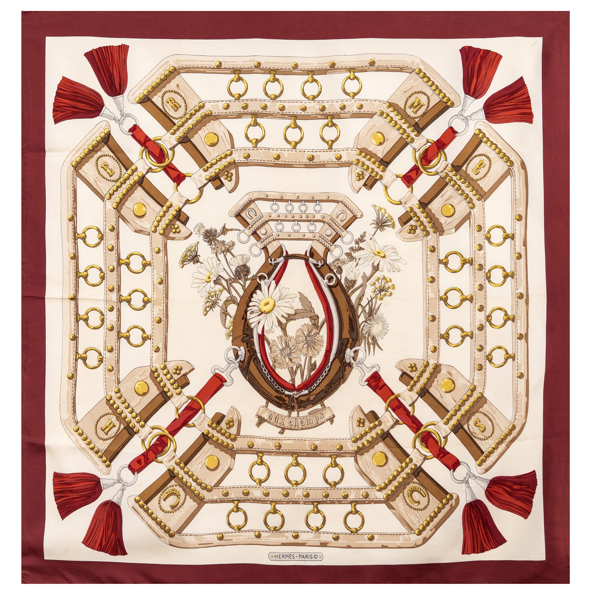 in seta nei toni del beige, bordeaux e giallo oro, condizioni buone