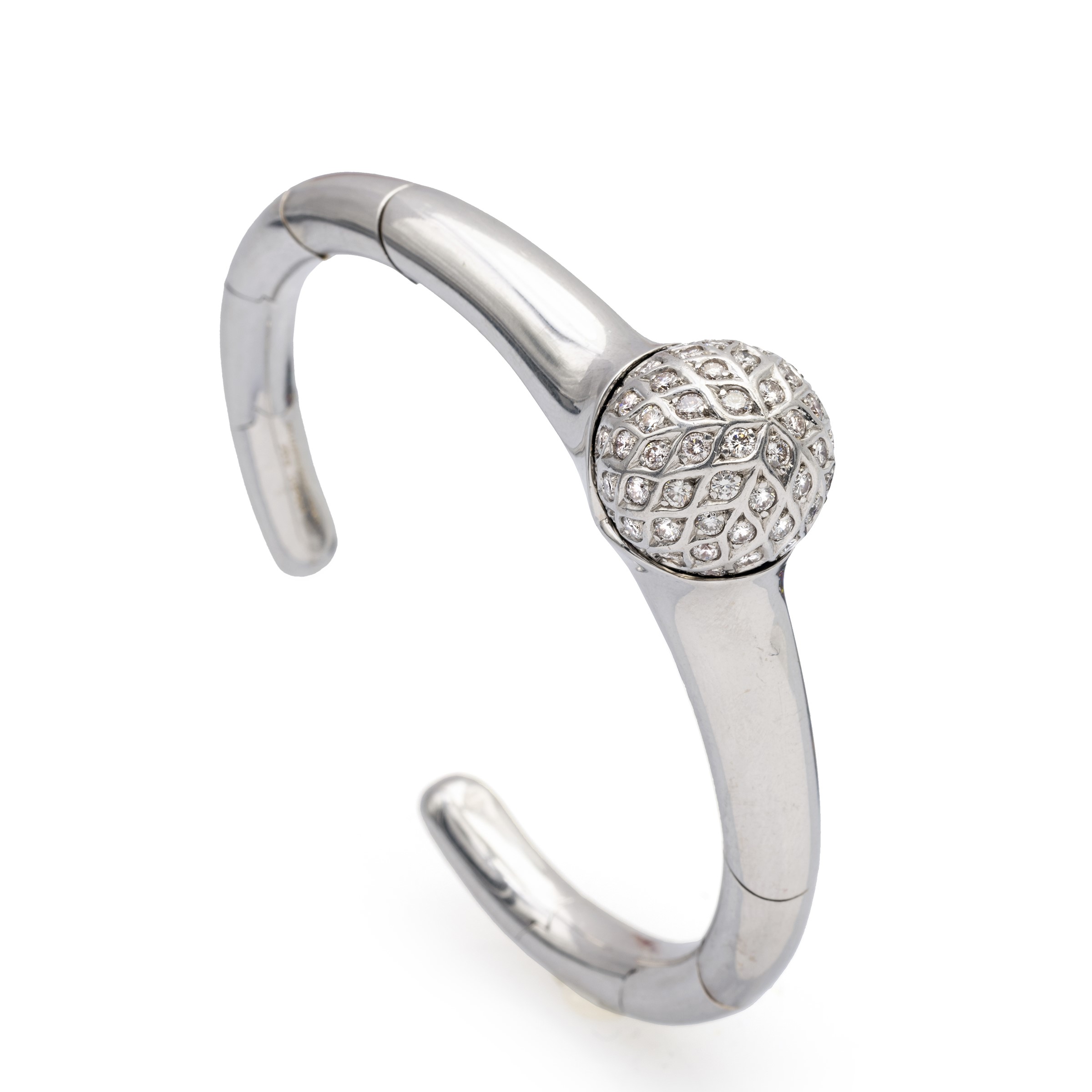 firmato e numerato in oro bianco 18kt sormontato da sfera in oro bianco e diamanti taglio brillante ct 1 circa, diametro 6 cm.