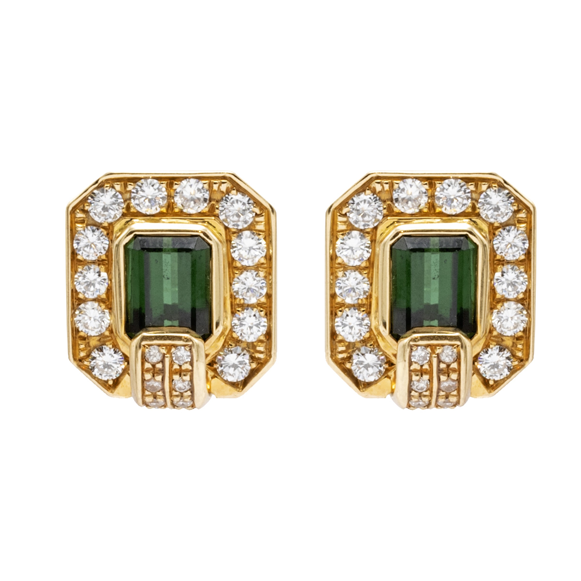 Orecchini a lobo in oro giallo 18kt tormalina verde e diamanti
