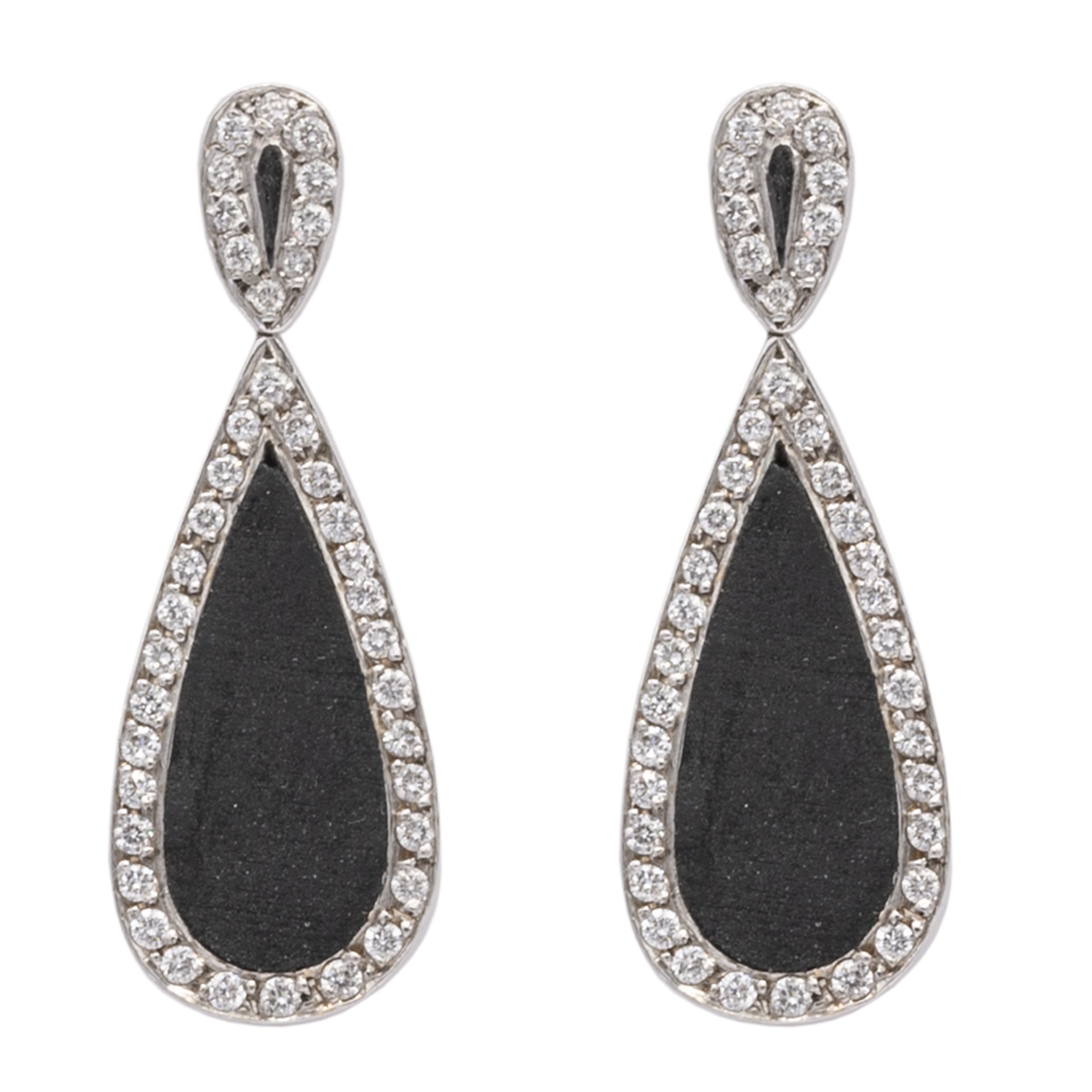 Orecchini pendenti in oro bianco 18kt caucciù e diamanti