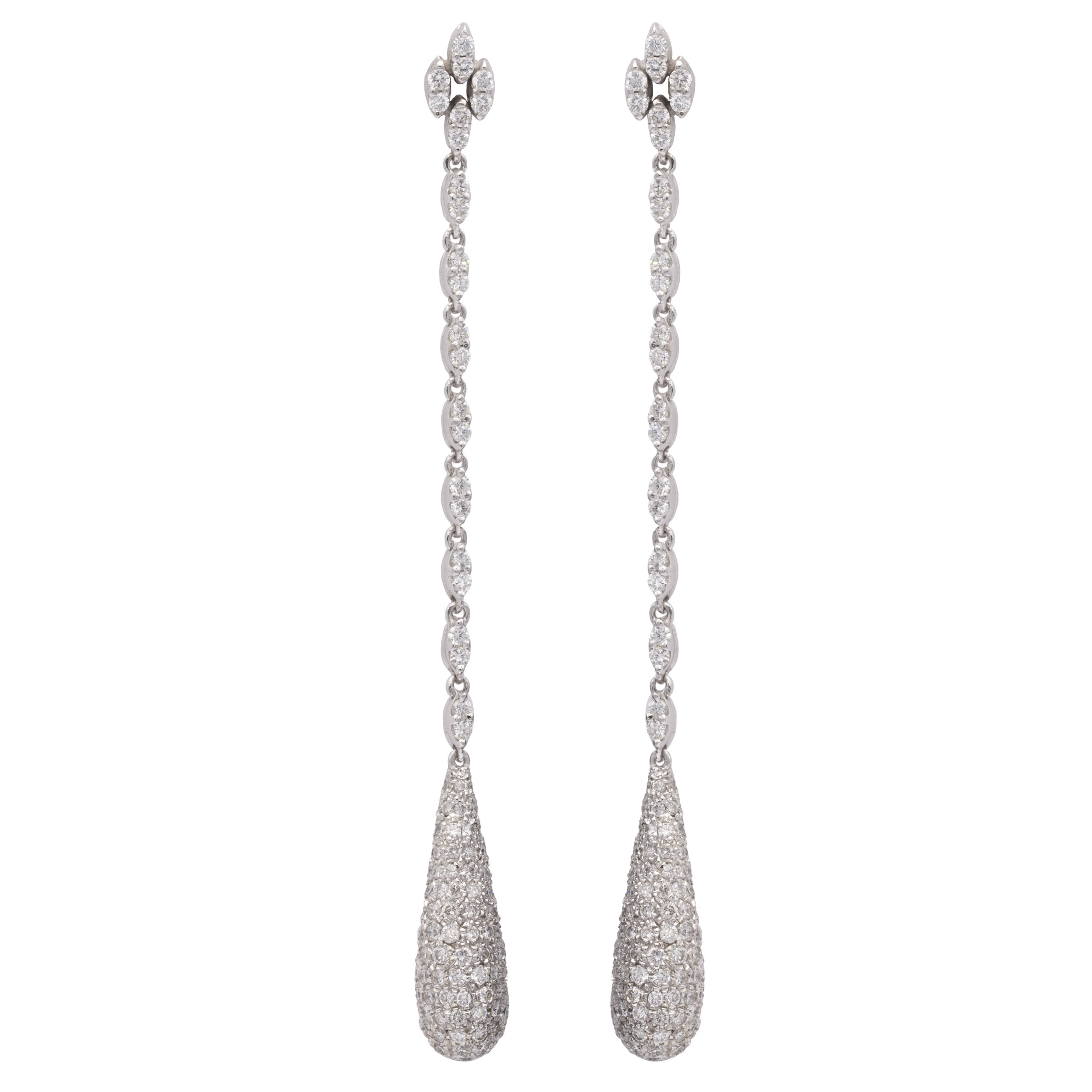 Orecchini pendenti in oro bianco 18kt e goccia di diamanti