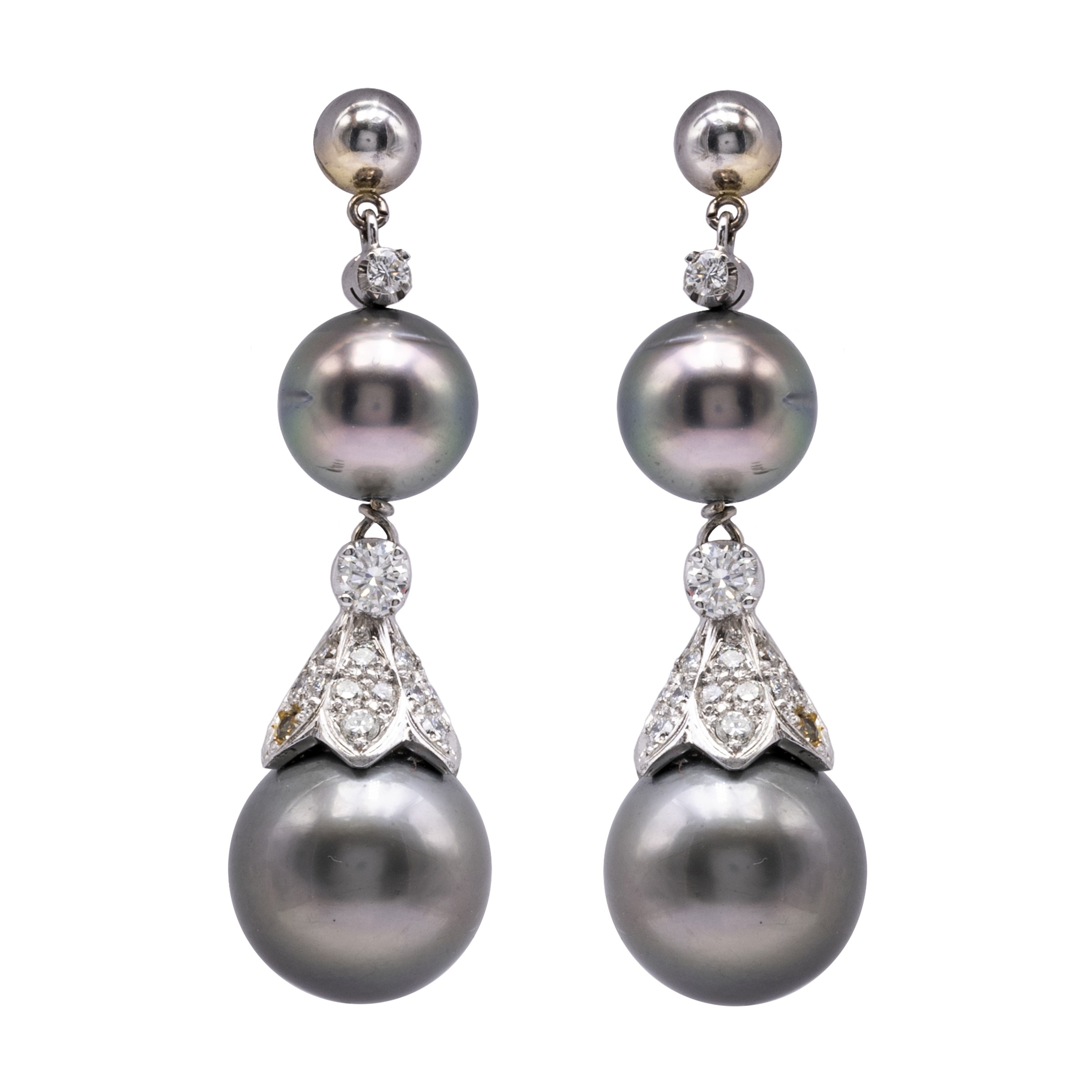 Orecchini pendenti in oro bianco 18kt e perle Tahiti