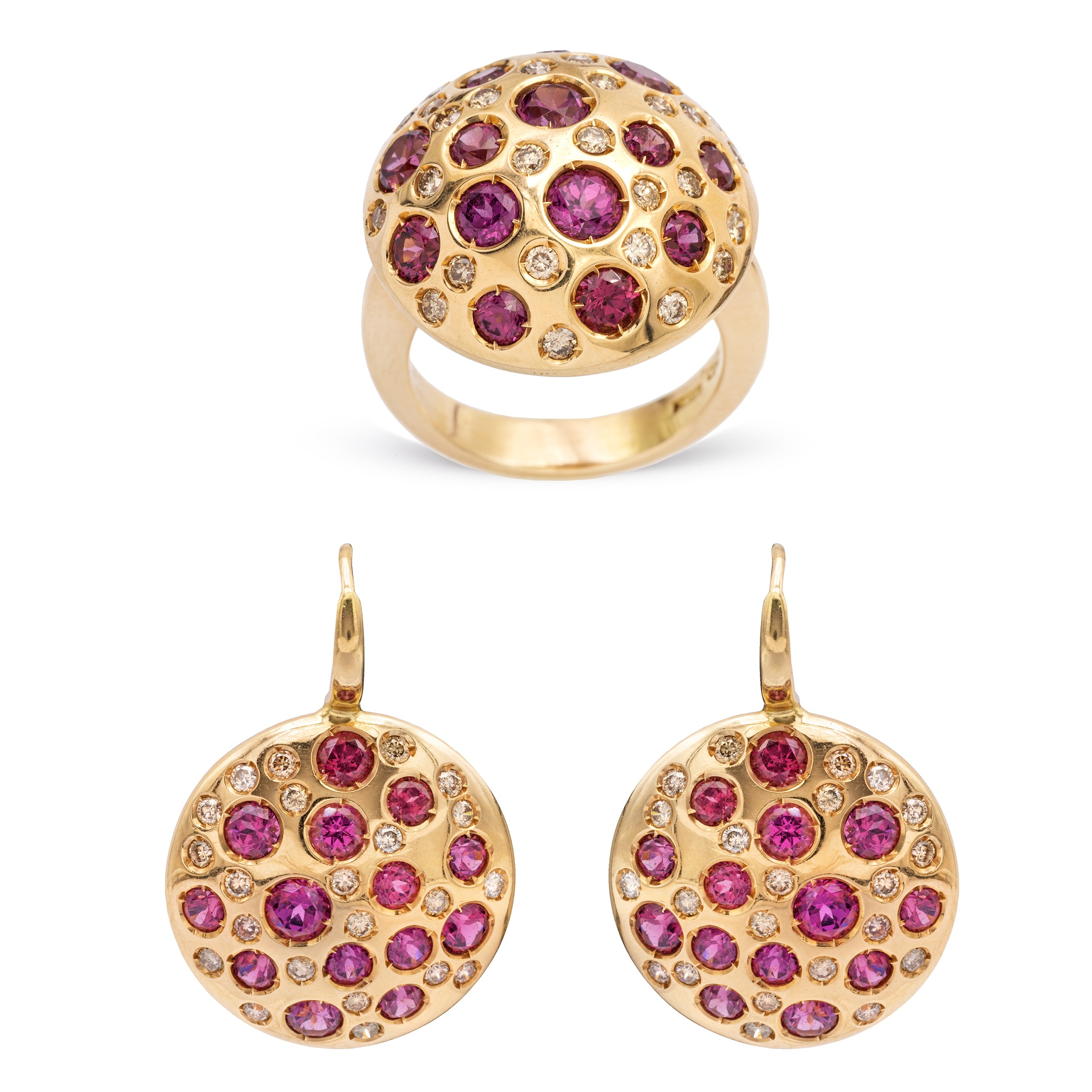 Parure in oro rosa 18kt zaffiri rosa e diamanti