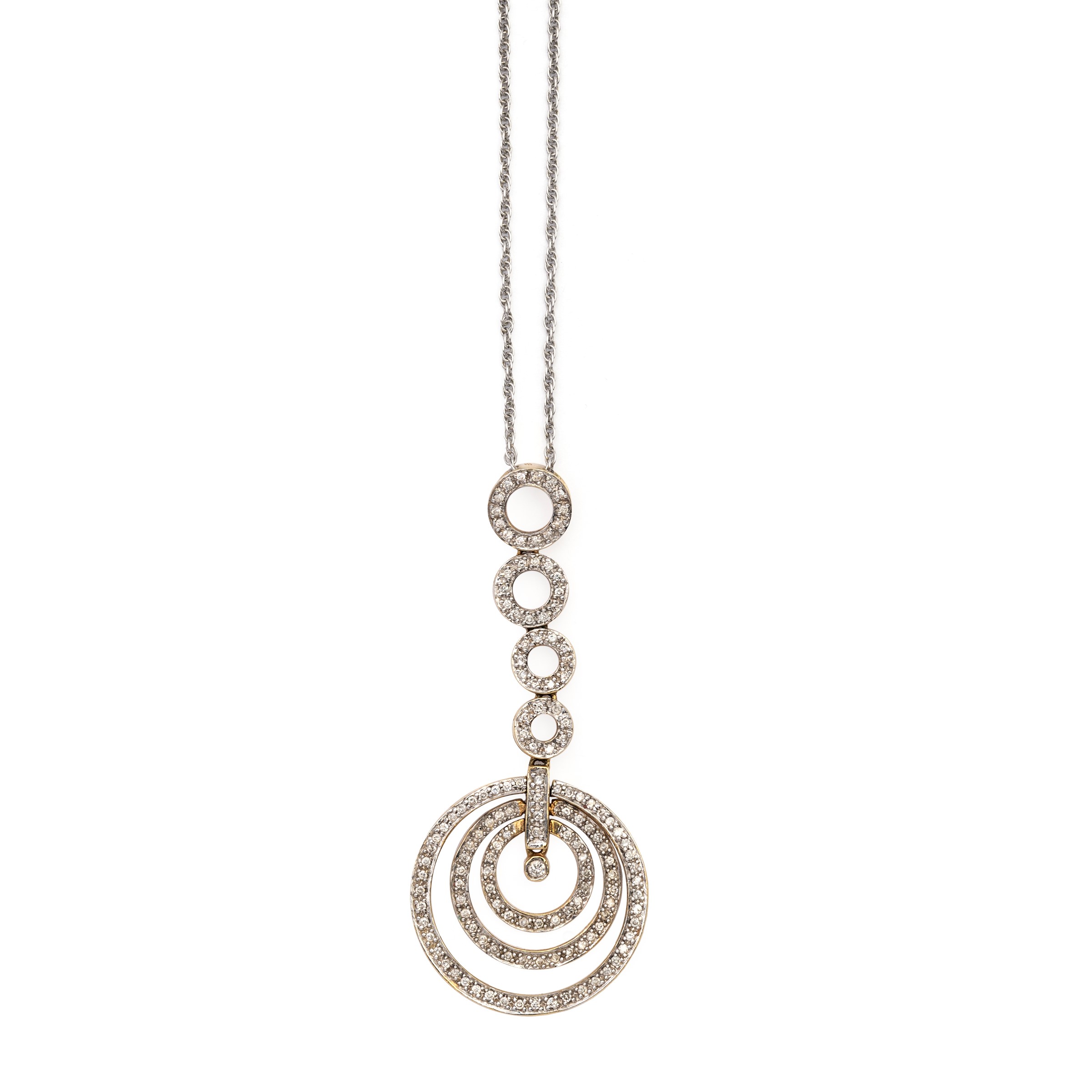 taglio brillante, completo di collanina in oro bianco 18kt lunghezza 40 cm. - pendente 5,3 cm.