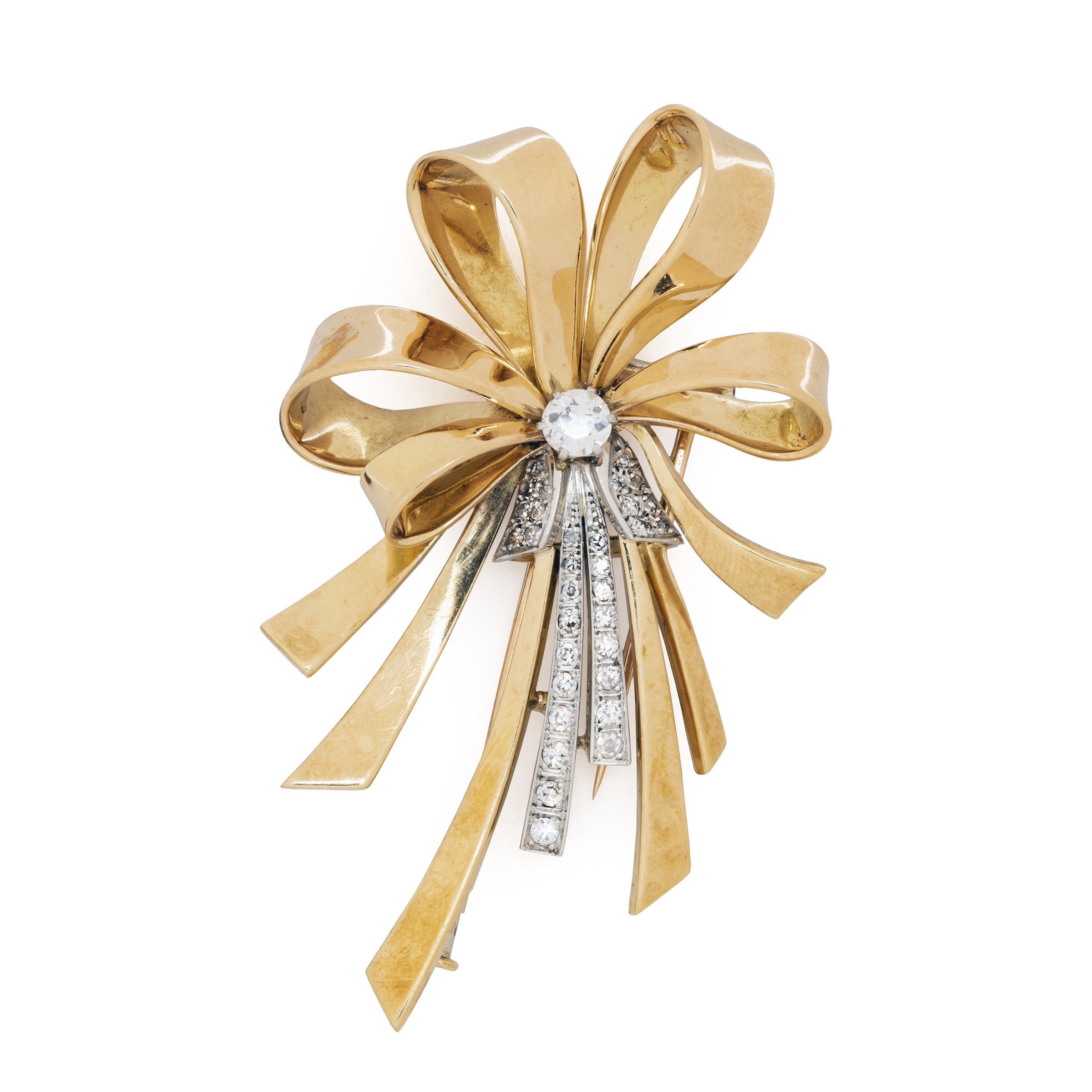Spilla fiocco in oro giallo e bianco 18kt con diamanti