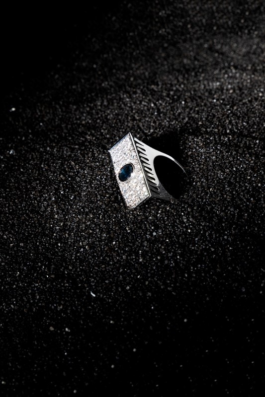 oro 18 kt, zaffiro kt 0,50 ca., brillanti kt 1,20 ca., misura 20, g 19,5.