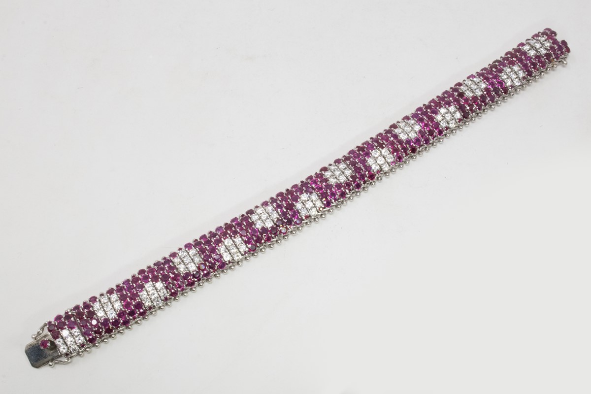 Bracciale a fascia snodata in oro bianco, con rubini e diamanti
