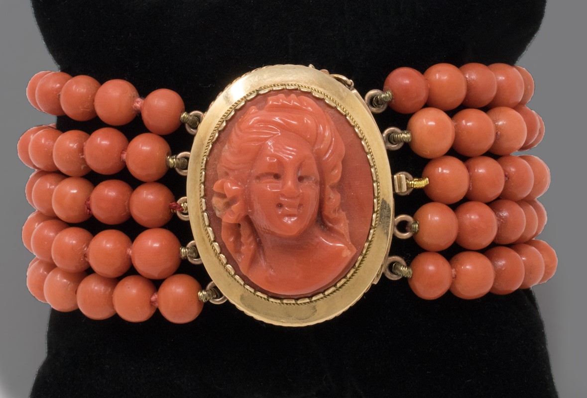 oro 18 kt, corallo mm 6,5 ø, g 64.
