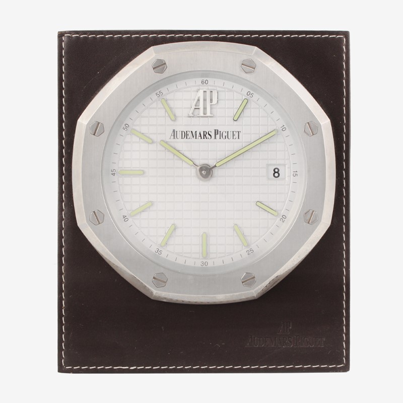 Ref: 2485, Royal Oak, orologio da scrivania, in pelle e acciaio, con datario a carica manuale Realizzato nel 2010 circa DIM: 13 x 15 x 2