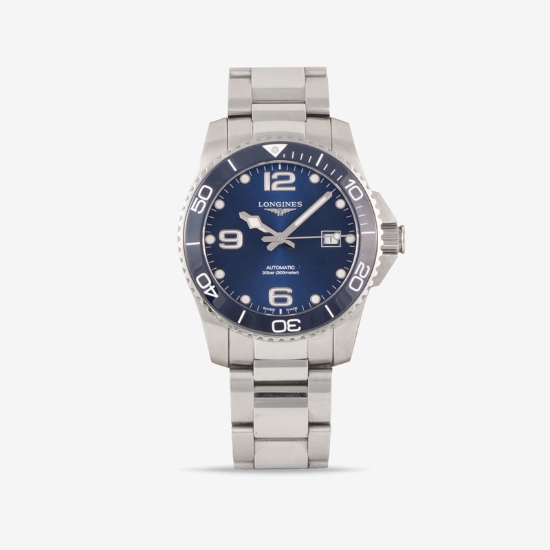 Ref: L3.781.4, Hydro Conquest, Ceramica Cassa: in acciaio, ghiera in ceramica, fondello a vite. Vetro zaffiro Quadrante: Blu, numeri Arabi, indici tondi, datario. Sfere a bastone luminose Movimento: automatico Bracciale: originale in acciaio con chiusura deployante Anno: 2020 DIAM: 41 mm Accessori: scatola originale, Garanzia, maglie aggiuntive, libretto Nota: in ottime condizioni, come Nuovo