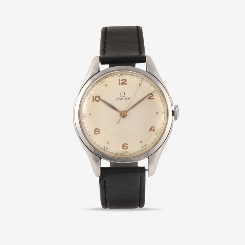 Ref: 2506-1 Jumbo Cassa: in acciaio, fondello a pressione Quadrante: Argento, numeri Arabi. Sfere a foglia Movimento: manuale, 30T2 SC Cinturino: fibbia originale in acciaio Anno: 1947 circa DIAM: 38 mm