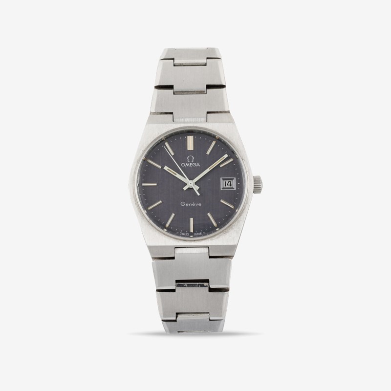 Ref: 1360050 Cassa: in acciaio, fondello a vite Quadrante: Blu, indici a bastone, datario. Sfere a bastone luminose Movimento: manuale, cal. 613 Bracciale: originale in acciaio con chiusura deployante originale Anno: 1972 DIAM: 35 mm Nota: in ottime condizioni, pari al nuovo NOTA: Questo orologio presenta una cassa molto simile al famoso Oysterquartz di Rolex