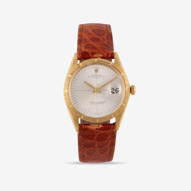 Ref: 1510/1503, Date Cassa: No.2223098, in oro giallo 18K, fondello a vite Quadrante: Argento, apertura per la data. Sfere a bastone Movimento: automatico, cal. 1570 Anno: 1969 circa DIAM: 34 mm Nota: La linea Rolex “Zephyr” si caratterizza per il quadrante diviso in quattro settori da due linee perpendicolari e per una particolare lunetta graduata, che riporta gli indici incisi.