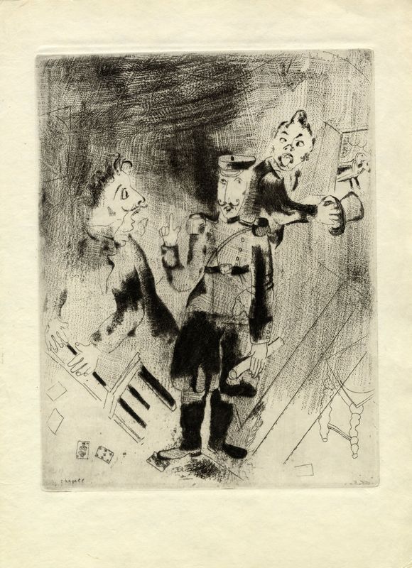 Acquaforte su carta Japon. mm 284x226. Foglio: mm 385x280. Firma in lastra in basso a sinistra. Tavola XXV dalla cartella Les Âmes mortes.