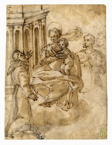 Penna, inchiostro e acquerello bruno su tracce di matita nera, sottile carta vergellata color avorio. mm 153x113. [..]