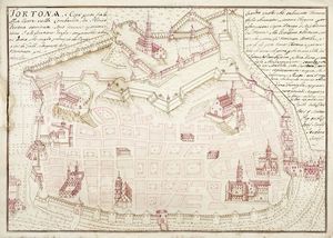 Amsterdam: presso l'autore 1663. Incisione in rame in coloritura coeva. mm 420x535. Foglio: mm 565x665. Da Civitates [..]