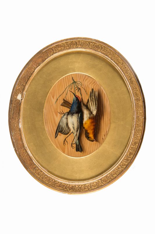 Olio su tavoletta. Diam. cm 17/21,6. Firmato in basso a destra. Parere verbale positivo di Antonio Parronchi.