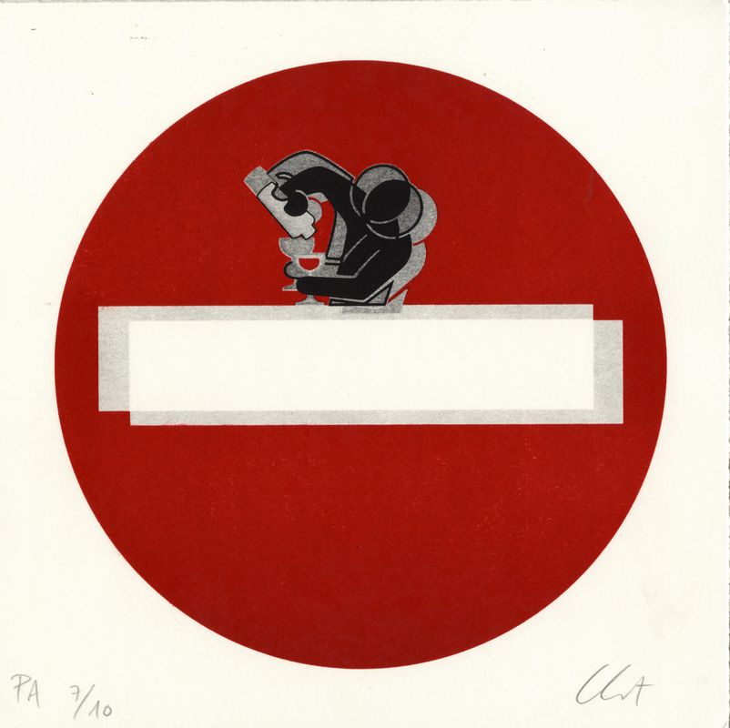 Litografia. Diam. mm 250. Foglio: mm 305x302. Firmata a matita in basso a destra e numerata in basso a sinistra. Pa 7/10. Le piazze fiorentine principali nelle quali si possono ammirare le opere di Clet sono Sant'Ambrogio e Piazza della Repubblica.