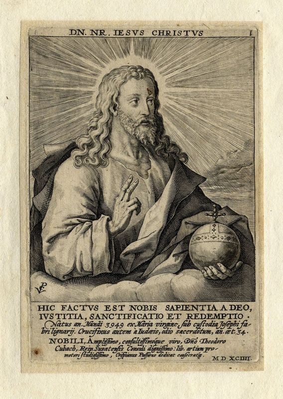 In-8 oblungo (mm 288x204) album rilegato al margine superiore. Hollstein , 240-253. Serie completa e omogenea in quattordici tavole a bulino (mm 143/146x97/98 Foglio: mm 151/160x104/107), numerate progressivamente in alto a destra. La prima tavola con Cristo reca il monogramma dell'artista e la data "MDXCIIII", tutte le altre portano il nome del van de Passe per invenzione, esecuzione ed edizione. Bellissime prove su carta vergellata. Legatura con cucitura a vista al margine superiore, piatti in seta verde con decori decò.