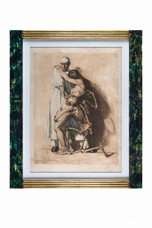 Acquaforte e vernice molle a colori. mm 735x538. Foglio: mm 940x700. Firmata a matita in basso a destra. Si tratta della versione più grande e più bella del famoso soggetto eseguito dall'artista all'indomani della perdita della sorella che invano il medico riuscì a strappare alla morte.