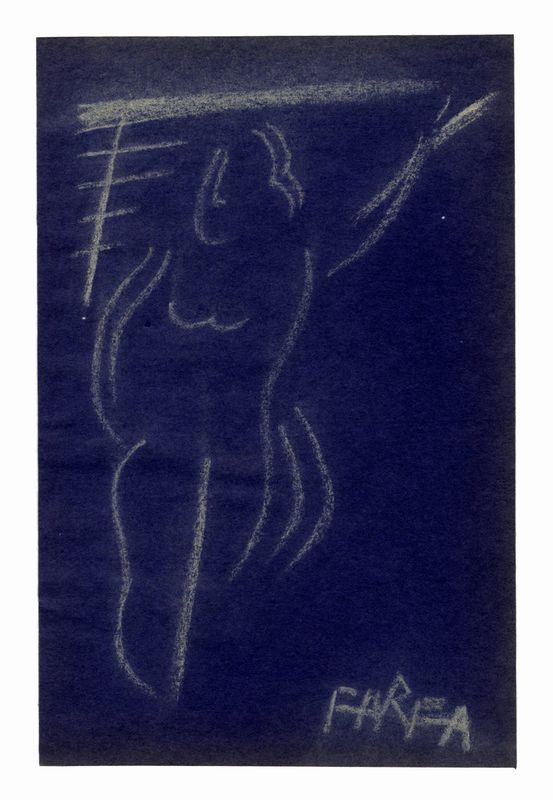 Pastello grasso su carta blu. mm196x130. Firmato in basso a destra.