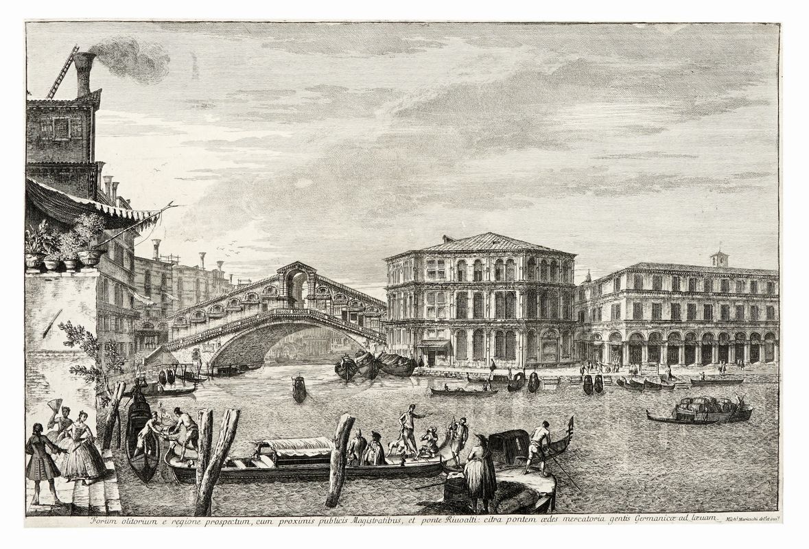 Acquaforte. mm 315x464. Succi (1987), 19. Succi (2013), p. 250. Al margine inferiore il titolo al centro e a destra "Mich.l Marieschi del.t et inci.t". Tavola da Magnificentiores Selectioresque Urbis Venetiarum prospectus,... serie di ventuno grandi vedute di Venezia pubblicata per la prima volta nel giugno 1741. Bellissima e fresca impressione nel I stato di 4, prima di "N.°9" in basso a sinistra e di numerosissimi tratti a bulino, stampata su carta vergellata veneta priva di filigrana.